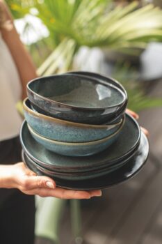 Kameninová kolekce Lave se vyrábí v několika základních tvarech. Jednu misku tak můžete použít ráno na cereálie, přes oběd na polévku a večer na mix oříšků. Talíře, misky a hrnky zdobí originální glazura s lesklým povrchem. Kolekci obzvlášť sluší kombinace s přírodními materiály.