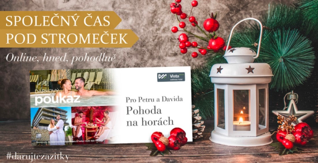 Co čeká vaše blízké? Můžete jim darovat pobyt ve čtyřhvězdičkovém Wellness hotelu Vista, který nabízí vyhlášené animační programy pro děti i vyhřáté wellness s originálními spa procedurami. Poděkujte těm, kteří se o vás celý rok starali, a dopřejte jim čas pro zasloužený odpočinek!