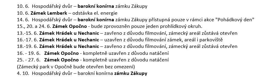 Upozornění na mimořádná uzavření celého objektu nebo vybrané části z důvodu filmování nebo konání kulturní akce: