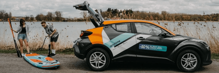 Výlet k vodě si můžete užít i v případě, že nemáte vlastní auto. Lze zvolit příjemnou variantu v podobě zapůjčení sdíleného moderního vozu s klimatizací od Anytime carsharing. Zde si v aplikaci stažené do mobilního telefonu můžete vybrat nejbližší zaparkovaný vůz včetně kombíků a můžete k vodě vyrazit okamžitě. Na léto jsou navíc připraveny speciální tarify, včetně šestihodinového od 299 Kč. Stejně můžete využít celodenní tarif či půjčení auta na dva dny či prodloužený víkend.