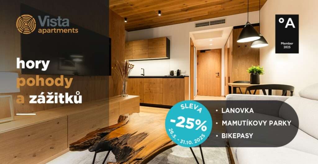 Kromě toho mají hosté letos v létě také možnost využít slevu 25 % na zážitky. Každý ubytovaný host Vista Apartments bude mít automaticky o čtvrtinu levnější lanovku, bikepasy a vstup do Mamutíkových zážitkových parků.