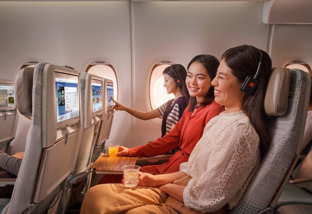 Spotify se snadno spustí na palubním systému ice od Emirates, který obsahuje více než 6 500 kanálů s rozmanitým obsahem ve více než 40 jazycích. Cestující mají k dispozici více než 4 000 hodin filmů a televizních kanálů, až 3 500 hodin hudby a podcastů, více než 2 000 hollywoodských i mezinárodně uznávaných filmů, 250 speciálních dětských a rodinných kanálů a stovky seriálů, včetně nejnovějších pořadů z Paramount+, HBO Max, Discovery+, BBC, Bloomberg Originals a Shahid. Členové programu Emirates Skywards mají také přístup k bezplatné Wi-Fi.