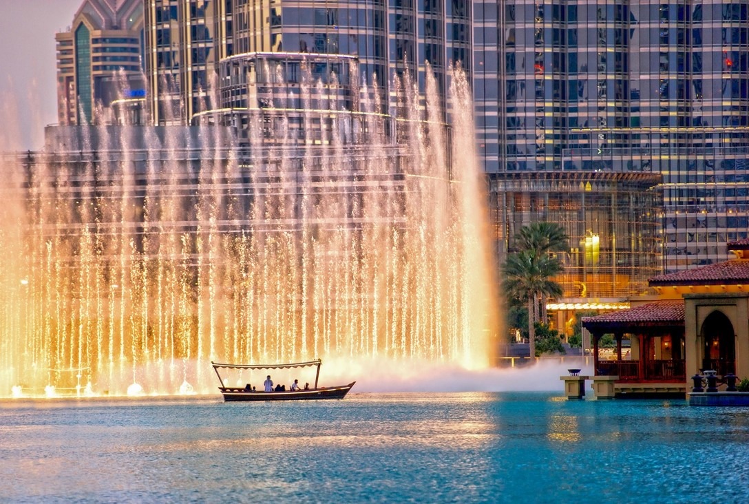 • Vyhledávaná dubajská fontána se nachází u Burdž Chalífa a je jednou z neznámějších atrakcí města. Fontána nabízí neuvěřitelnou podívanou, vodní show až do výšky 275 metrů společně s oslnivými světelnými efekty. Můžete si zde dopřát také večeři, která doplní celkový romantický zážitek.