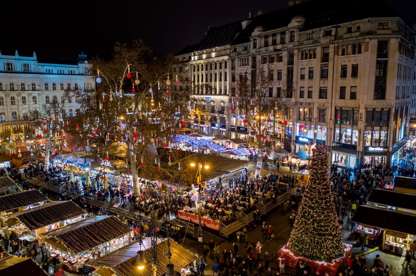 Vánoční trh v parku Városháza, který se nachází v blízkosti náměstí Deák Ferenc, letos nabízí food trucky a aktivity pro rodiny. Projděte se mezi stánky s ručně vyráběnými dárky a vychutnejte si tradiční sváteční jídlo nebo místní pouliční speciality, jako je lángos a forralt bor (svařené víno), a zároveň nasávejte sváteční atmosféru.