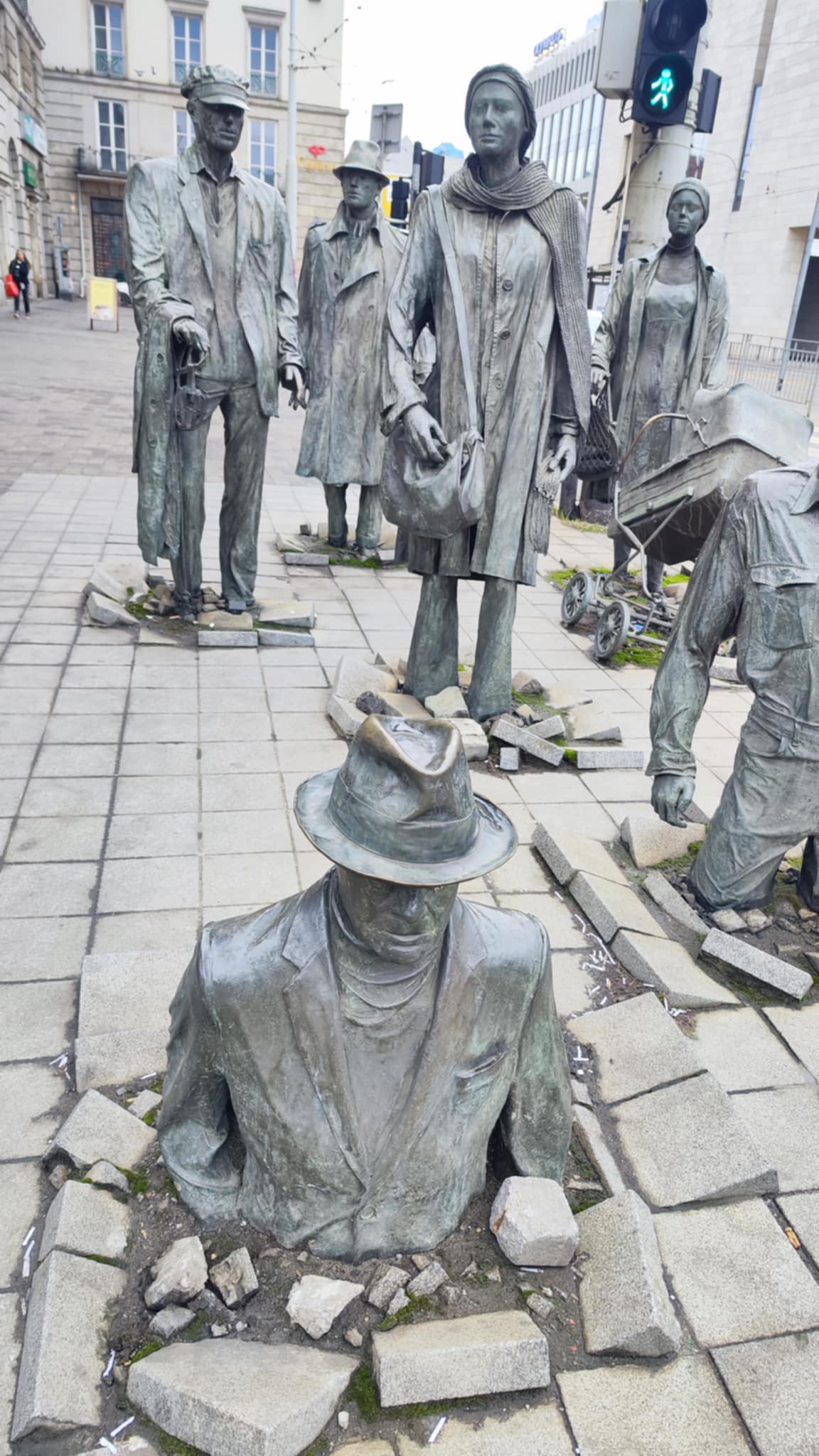 Pomník anonymních chodců ve Wroclawi, známý také jako „Przejście“ (Přechod), je památník obětem stanného práva, které bylo vyhlášeno v Polsku v roce 1981. Stanné právo bylo zavedeno komunistickou vládou s cílem potlačit hnutí Solidarita. Během tohoto období mnoho lidí zmizelo nebo bylo zatčeno a uvězněno. Památník se skládá ze čtrnácti bronzových postav, které se noří do země na jedné straně ulice a vynořují se na druhé straně. Postavy jsou anonymní a neidentifikovatelné, což symbolizuje anonymitu obětí. Památník má připomínat tragické události minulosti a varovat před nebezpečím totalitních režimů.
