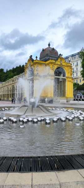 Přímo před Hlavní kolonádou se pak rozprostírá další klenot – Zpívající fontána. Její představení jsou legendární. Proud vody, světel a hudby se snoubí v jedinečnou choreografii, která je fascinující podívanou. Fontána hraje v pravidelných intervalech během dne, ale večerní show s barevnými světly je naprosto nezapomenutelná.