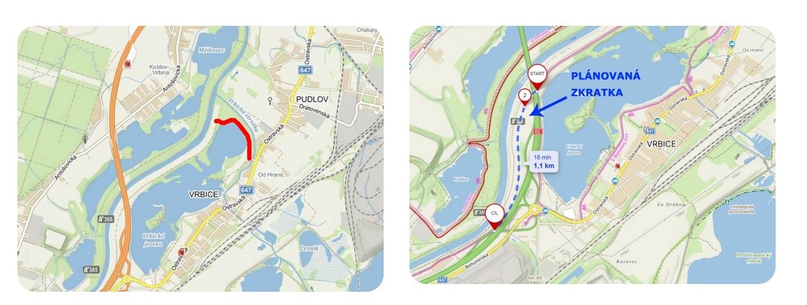 Druhý úsek u areálu štěrkovny v Pudlově přibyl v roce 2017, část mezi Vrbickým jezerem a řekou Odrou o rok později a v roce 2019 dokončilo město trasu od parkoviště k visutému dálničnímu mostu. Definitivnímu propojení stezek ale vystavil stopku koronavirus a jeho dopady, následně pak válečný konflikt na Ukrajině a s ním spojená energetická krize. Přednost dostaly důležitější investice.