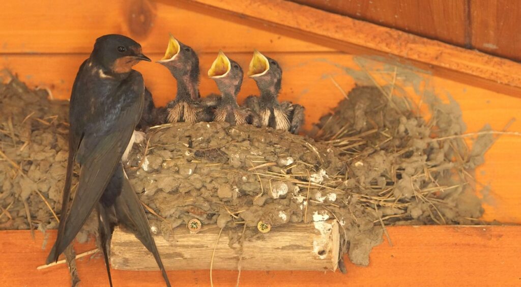 Vlaštovky a jiřičky mají rády budovy s ustájenými zvířaty, a tak i v areálu ostravské zoo jsou vázány na stáje s nejrůznějšími chovanými zvířaty. „Zde můžeme vlaštovkám pomoci upevněním podložky uvnitř stáje, na které si následně umístí hnízdo, jak je patrné ze záběrů ve stáji onagerů. Tyto podložky mohou mít malé rozměry, pro uchycení hnízda to úplně stačí. Jiřičky si hnízdo lepí přímo na venkovní zeď, v Zoo Ostrava např. na pavilony slonů a afrických zvířat. Potřebují k tomu vlhký jíl, který jim v suchých letech dodáváme,“ doplňuje Otakar Závalský.