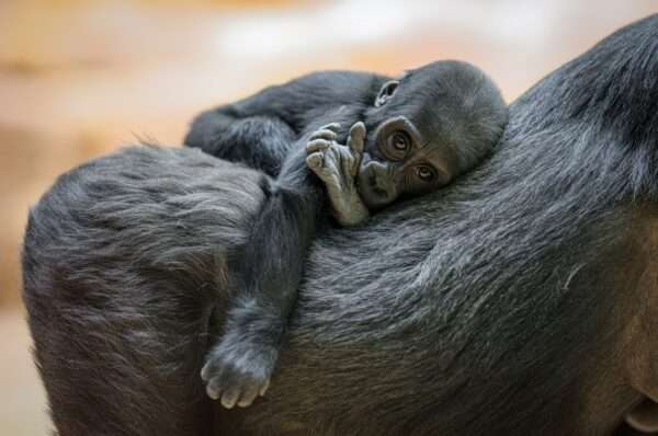 Gaia je stále sebejistější v chůzi po zemi i v lezení po lanech a parkosech. Pokud zrovna nespí nebo neodpočívá na zádech své matky Kijivu, hraje si se sestrou Mobi.