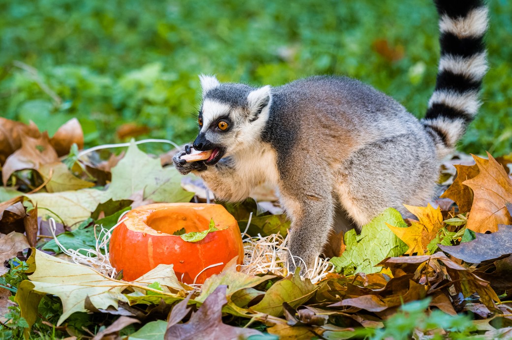 Lemuři kata patří spolu s chápany, talapoiny či gorilami mezi primáty, kteří dostanou během podzimních prázdnin v Zoo Praha dýňový enrichment. Foto Petr Hamerník, Zoo Praha