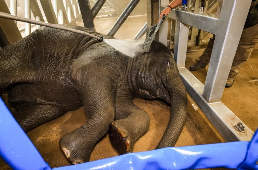 „Pravidelný veterinární trénink je důležitý kvůli prevenci, kdy každodenní kontrolou můžeme odhalit potenciální zdravotní problém, navíc nacvičené veterinární úkony jsou pak pro zvířata pouhou rutinou, a nikoli stresujícím podnětem,“ vysvětluje význam práce se slony jejich vrchní chovatel Martin Kristen.