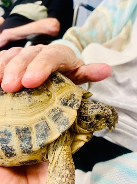 Klienti domova pro seniory si nejvíce užili přímý kontakt s živými zvířaty z táborské zoologické zahrady. FOTO: ZOO Tábor/Eva Nemravová