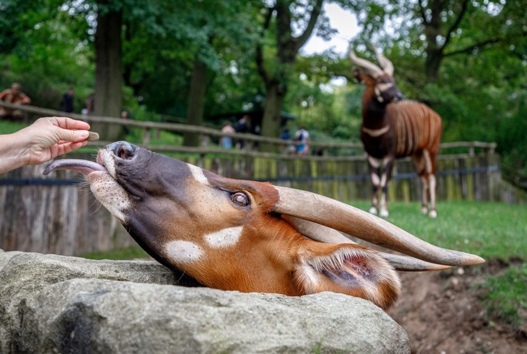 Bongů horských žije v přírodě mnohem méně než v zoologických zahradách. Z prostředků získaných svými chovateli přispívá Zoo Praha i na jejich návrat do přírody v Keni. Foto Miroslav Bobek