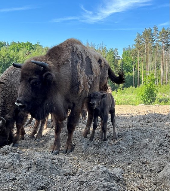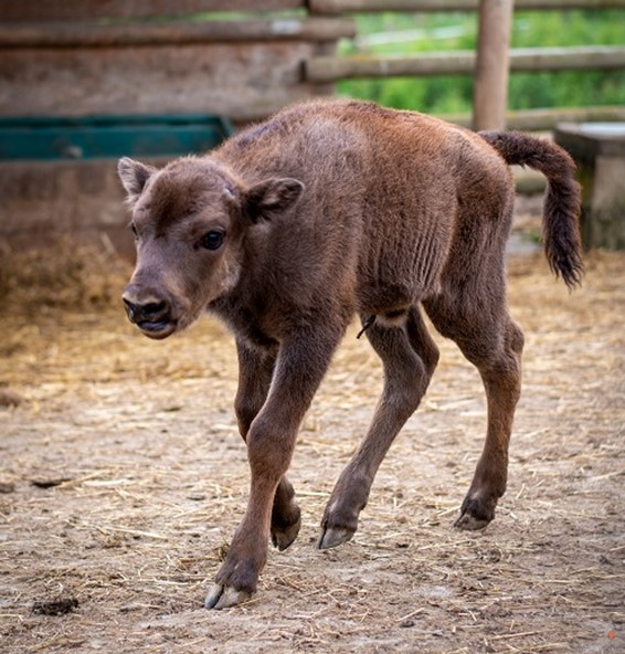 Mládě zubra evropského, které se narodilo Usjaně a Poczekajovi, na své jméno stále čeká. Foto: ZOO Tábor/ Václav Kučera