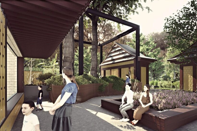 Do Nusantary budou návštěvníci vstupovat impozantní dřevěnou branou z japonské zahrady Mu-Shin. „Součástí celého prostoru budou voliéra zoborožců a čápů marabu, expozice plazů a také průchozí voliéra s dikobrazy a kaloni. Vnitřní ubikace tapírů čabrakových umožní poprvé uvidět tento největší druh tapíra i v zimě. Zachovali jsme také propojení se stávajícími venkovními výběhy tapírů. Patří ke špičkovým zařízením svého druhu v evropských zoo, a to prostorově i esteticky, tapíři se v nich cítí výborně. A také samozřejmě budou moci i nadále využívat jejich oblíbené jezero,“ přiblížil ředitel Roman Horský. Vizuální stránka Nusantary se ponese v duchu indonéské architektury. „Inspirovali jsme se především stavbami z indonéských ostrovů, celý prostor doplní i nejrůznější artefakty spjaté s jejich kulturou a náboženstvím,“ dodal ředitel Horský.