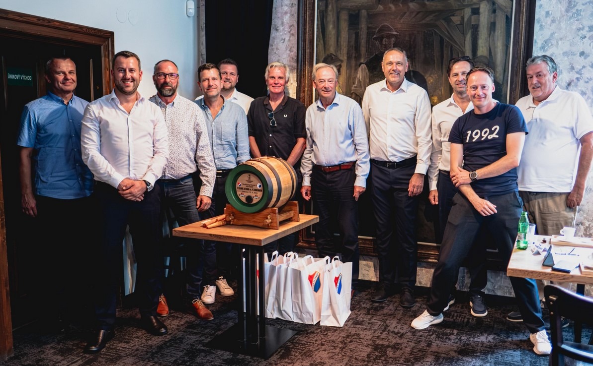 Předání soudku s pivem Radegast se uskutečnilo v rámci slavnostního oběda před odvetným zápasem 3. předkola Konferenční ligy mezi FC