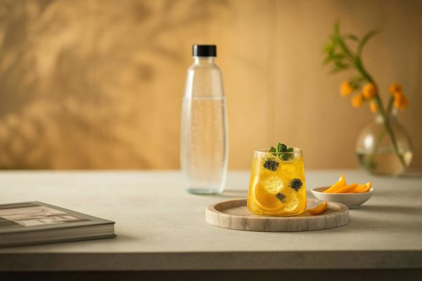 Nejprve připravte čerstvou perlivou vodu ve vašem výrobníku SodaStream. Do hotové perlivé vody pomalu přilijte dávku příchutě Pomeranč Mango Zero podle svých chuťových preferencí – ideálně po stěně lahve, a poté jemně promíchejte. Sklenici naplňte ledem, přidejte plátek limetky, čerstvou nebo mraženou malinu a lístek máty. Ozdobte kouskem celé skořice. Výsledný nápoj je voňavý, exotický a krásně osvěžující – ideální jako stylový drink pro letní večery s přáteli.