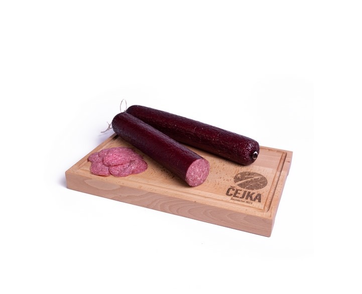 Vyrábět Vysočinu není žádná legrace. Tvrdé a přísné podmínky splňuje jen několik málo řeznictví v Česku, přičemž Čejkovi dokázali tu svou dotáhnout k dokonalosti. Když obdrželi pozitivní rozbor s povolením k výrobě, nechyběl u něj vzkaz od kontrolora, že takhle dobrou vysočinu ještě neměl! Zkuste i vy obohatit své večerní jednohubky o poctivý kousek vynikajícího salámu.