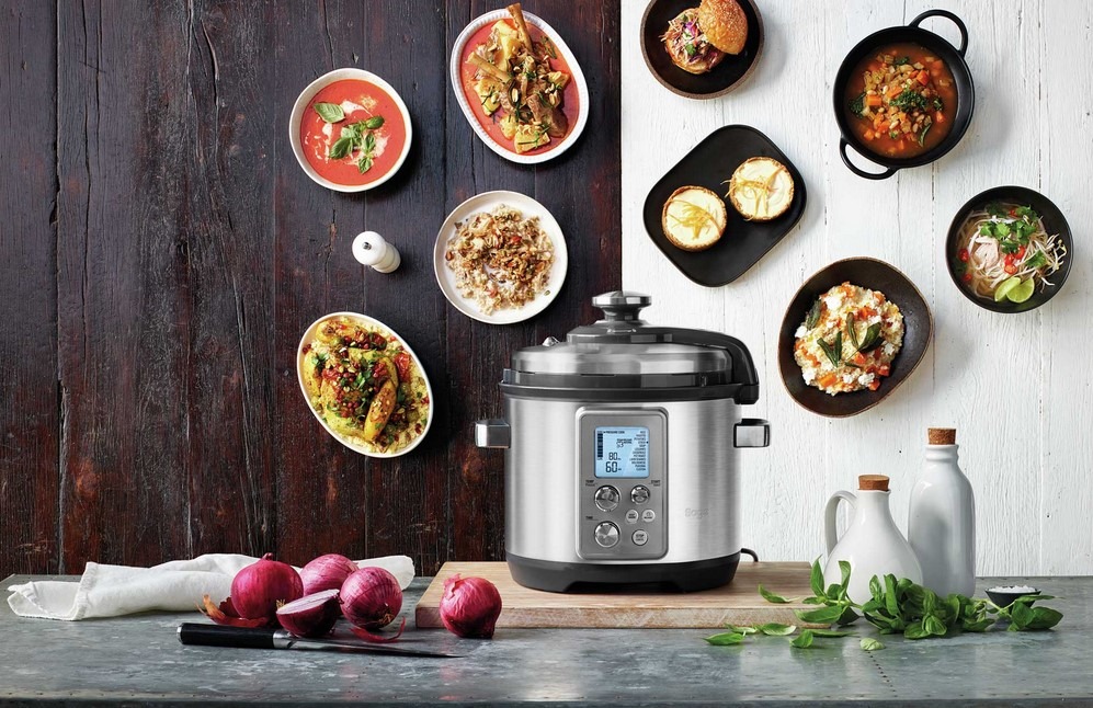 Multifunkční elektrický tlakový hrnec Sage BPR700BSS spojuje automatické tlakové vaření se stále populárnějším „pomalým“ vařením a získáte v něm tak dvě výhody v jednom. Dokáže automaticky nastavit ideální kombinaci času, teploty a tlaku mezi rychlou a pomalou úpravou, a to vše hlídá prostřednictvím duálních snímačů na horní a dolní části hrnce. Výsledkem je pak maximální chuť a ideální konzistence pokrmu. Hrnec nabízí 6 chytrých programů pro snadnou a rychlou volbu – vaření pod tlakem, pomalé vaření, zahušťování, opékání, restování a přípravu v páře.