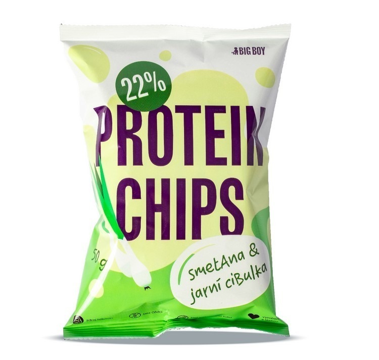 BigBoy asi znáte nejvíc jako výrobce skvělých ořechových krémů, pro své zákazníky ale vymýšlí stále něco nového. Proteinové chipsy s chutí smetany a jarní cibulky jsou výborné na malý hlad nebo velkou chuť.