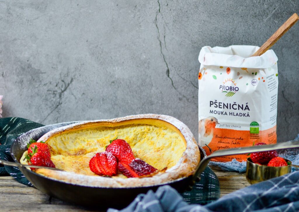 Pozn.: Na palačinku potřebujete pánev, kterou můžete dát do trouby a práci usnadní i ponorný (nebo jiný) mixér.