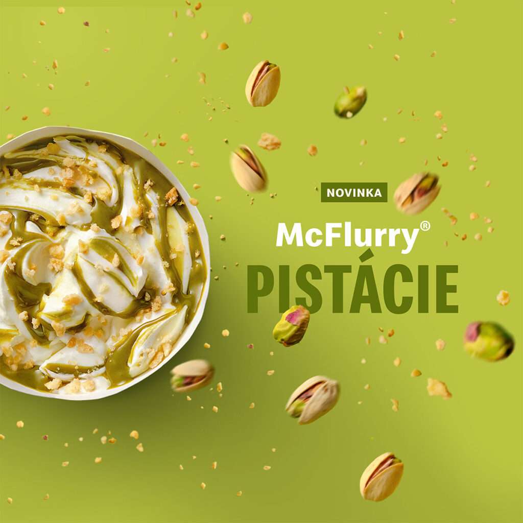 Sezona osvěžení začíná! Nově si mohou všichni zákazníci McDonald’s v České republice vychutnat sladkou letní novinku, která perfektně osvěží v horkých dnech a má v sobě trendy chutě. McFlurry pistácie přináší spojení jemné vanilkové zmrzliny s krémovou pistáciovou polevou a křupavou vaflovou posypkou – kombinaci, kterou musíte co nejdříve ochutnat.