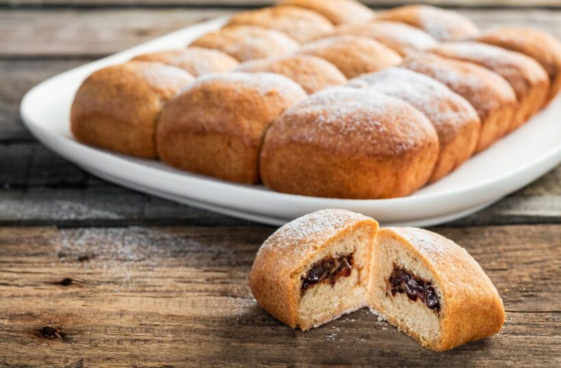 Z droždí, lžičky cukru, lžičky mouky a ze 3 lžic vlažného mléka nechte vzejít kvásek. V míse smíchejte mouku, cukr, špetku soli a kvásek. Přidejte vejce, změklé máslo, mléko a citronovou kůru. Těsto míchejte tak dlouho, dokud se nepřestane lepit na stěny mísy. Těsto nechte asi hodinu kynout na teplém místě, přikryté utěrkou. Po vykynutí tvarujte z těsta malé bochánky, ty roztáhněte na placku a naplňte povidly (asi 1 lžička). Buchty zabalte tak, aby náplň nevytékala, a vložte je do vymazaného pekáče uzavřenou stranou dolů. Buchty pečlivě pomažte máslem, aby se na sebe nelepily. Pečte 25–30 minut na 180 °C. Během pečení buchty ještě alespoň jednou potřete máslem.