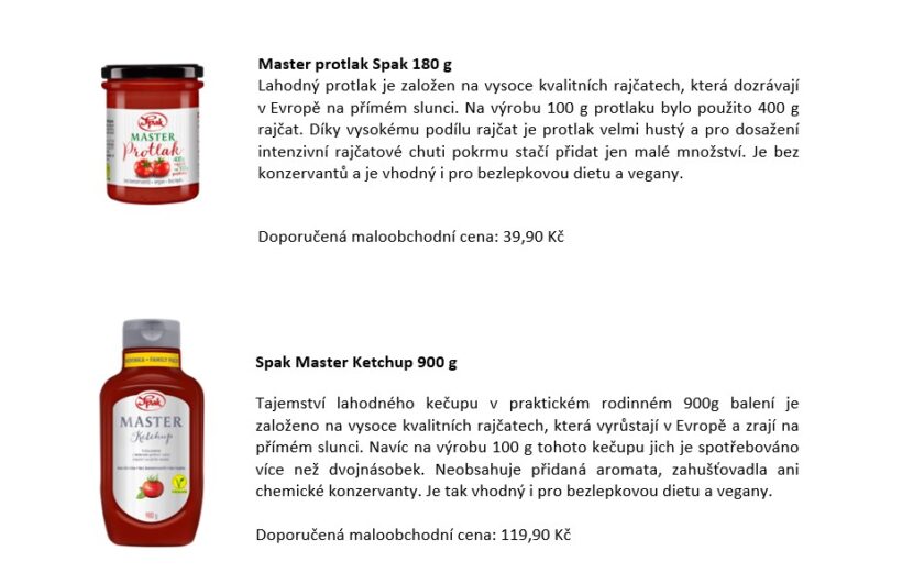 Co se omáčky týče, jejím nenahraditelným základem je rajský protlak. „Při jeho výběru věnujte pozornost podílu rajčat v produktu. Intenzivnější chuť mají protlaky s vyšším obsahem kvalitních rajčat,“ říká Michal Neškera, obchodní ředitel společnosti Spak a dodává: „Dáváme si záležet na vysokém podílu rajčat ve výsledném protlaku. Na výrobu 100 gramů našeho Master protlaku Spak spotřebujeme 400 g rajčat vyzrálých pod přímým sluncem.“