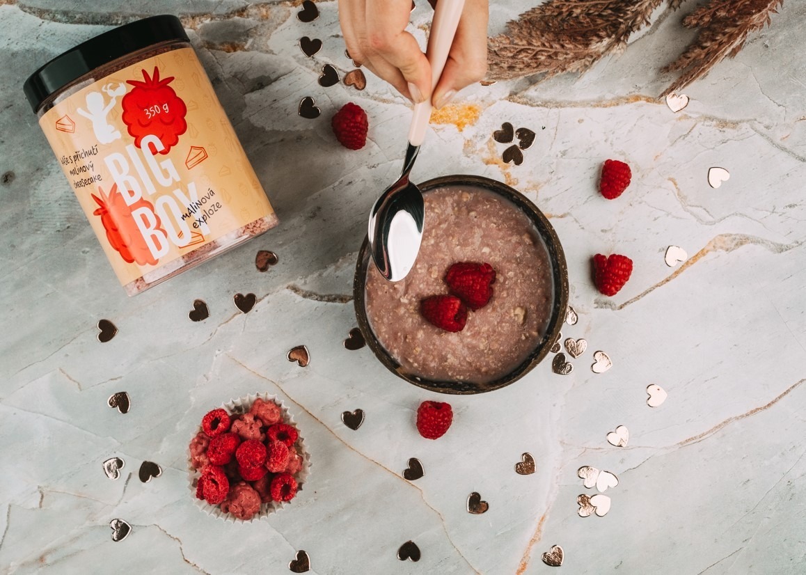 Růžové může být už valentýnské ráno. Rychlou a přitom výbornou sváteční snídani vykouzlíte s kaší Dracarys nebo Malinový cheescake. Ozdobte ji oříšky a ovocem a užijte si sladké společné ráno.