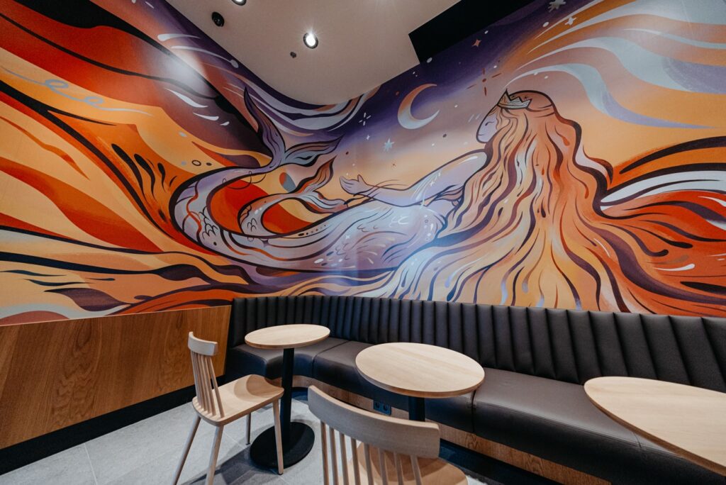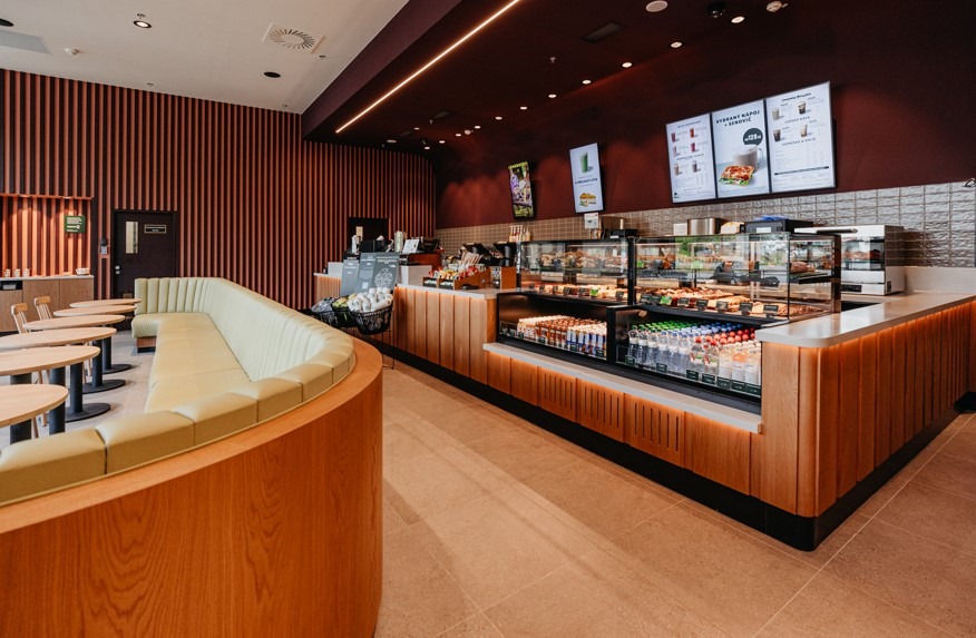 Kromě tradiční nabídky teplých i studených nápojů, sendvičů a dezertů se návštěvníci mohou těšit například na originální letní speciality a další produkty z aktuální sezónní nabídky, včetně zrnkové kávy, hrnečků nebo tumblerů. Dopřát si zde mohou také všechny rostlinné alternativy kravského mléka bez příplatku.