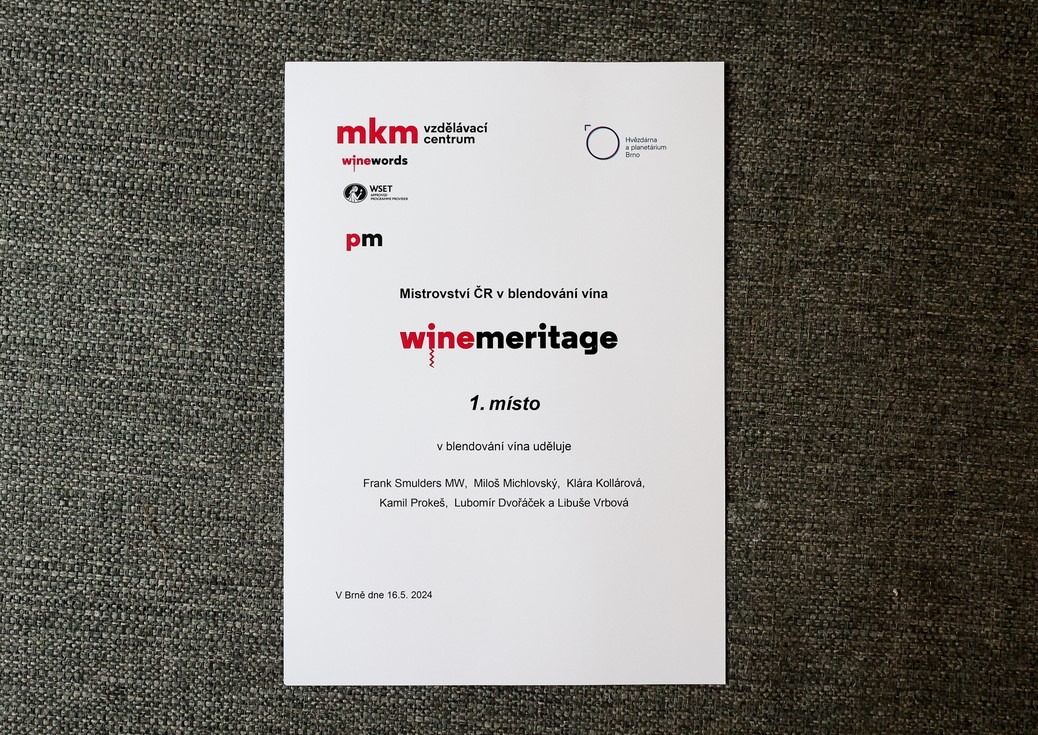 Pátý ročník prestižního Mistrovství v blendování vína Winemeritage 2024 se konal ve čtvrtek 16. května na Hvězdárně a planetáriu Brno. Soutěžní týmy z různých koutů republiky, mezi nimiž byli i opravdoví profesionálové z řad vinařů i sommeliérů, měly letos za úkol namíchat nejlepší cuvée z bílých moravských vín, tedy víno namíchané z několika vinných odrůd.