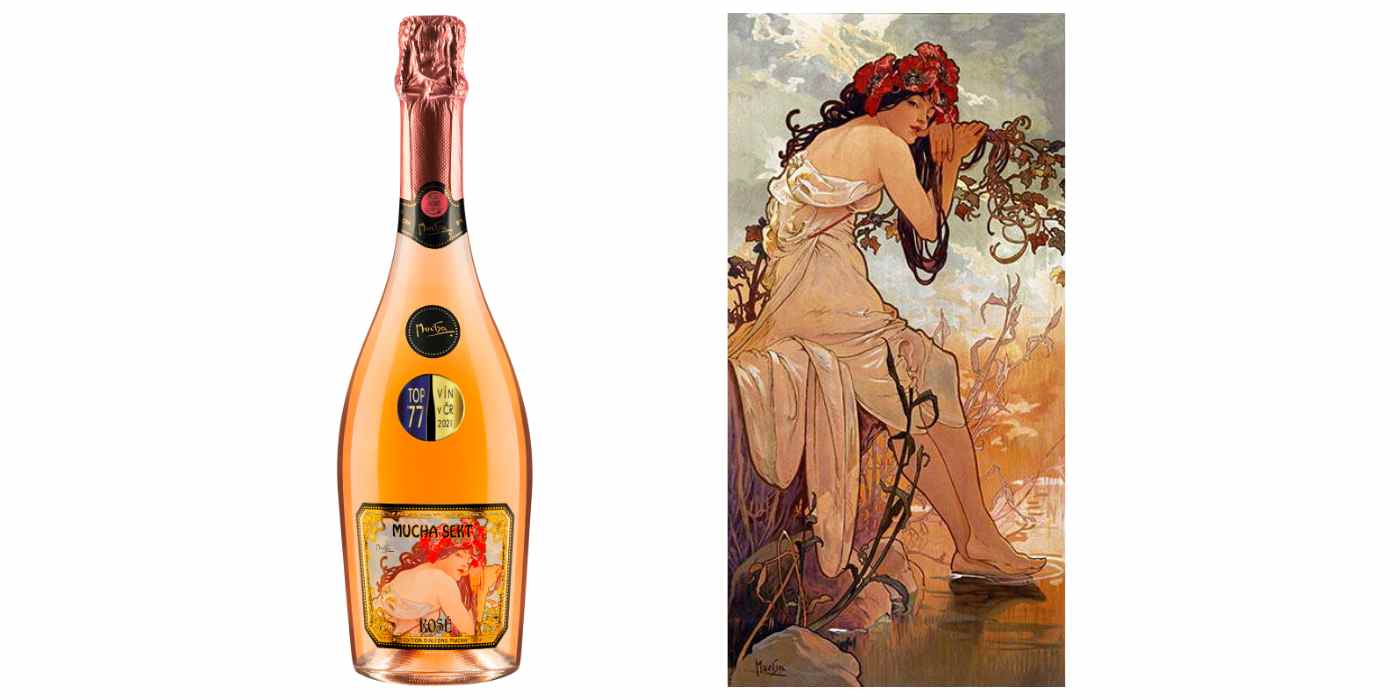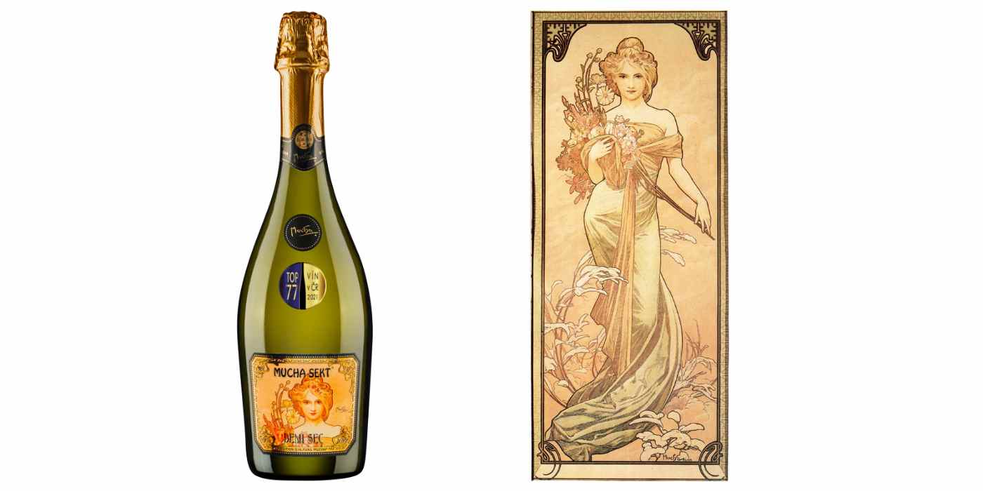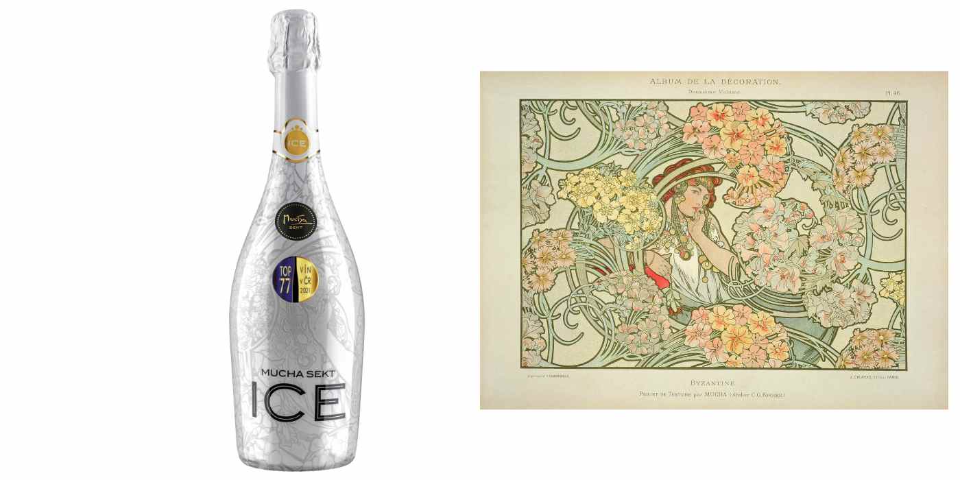 „Vína značky Mucha Sekt pocházejí z prémiových vinařských oblastí a podléhají nejnovějším trendům v oblasti zpracování hroznů i samotné výroby vína. Všechny produkty z elegantní řady ART DU VINS jsou typické svojí ovocnou svěžestí a každá lahev na sobě nese jiné Muchovo dílo. Etiketu Mucha Sekt Rosé Sec zdobí dílo ze starší série Les Saisons vydané roku 1986 s názvem Léto, které umělec zobrazil jako svůdnou brunetku s červenými květy vlčích máků ve vlasech. Žena se navíc opírá o vinnou révu a nohy si chladí v protékající bystřině. Mucha Sekt Demi Sec na sobě nese dílo s názvem Jaro ze stejnojmenné série Les Saisons, ale novější až z roku 1900. První roční období Mucha vymaloval jako půvabnou ženskou postavu zahalenou v jemné látce a s bohatou kyticí v ruce. Pro Mucha Sekt ICE jsme pak společně s Johnem Muchou vybrali dílo nesoucí název Byzantine. Centrálním prvkem díla je byzantská žena s hustými kadeřemi obklopená svěžími květinovými vzory. Její svůdný pohled k nám proniká skrze kulaté ornamenty, oblé stonky a jejich bohatá květenství, jako by přímo zval do sladké květinové vůně jedinečného Mucha Sekt ICE. Divoká krása tohoto nesmírně osvěžujícího sektu se ukrývá v jeho kulaté chuti a nádherné a velmi bohaté květinové vůni,“ dodává brand managerka Soare sekt Barbara Kozielová.