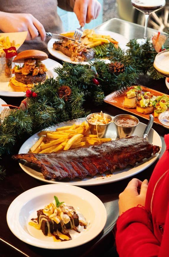 Návštěvníci mají na výběr z dvouchodové nebo tříchodové varianty, která zahrnuje předkrm, hlavní chod a dezert. Speciální vánoční menu nabízí skvělou bruschettu s čerstvým salátem, klasickým Ceasar dresinkem a uzenou slaninou Caesar Salad Bruschetta, pak třeba steak burger se sýrem, restovanými žampiony, salátem a hranolky Mushroom Swiss Burger, Surf & Turf Burger – steak burger s krevetami a pikantním zelím nebo Moving Mountains® Burger, rostlinnou placku se sýrem čedar a křupavým cibulovým kroužkem, podávanou se salátem a hranolky. Nechybí ani grilovaný losos s hranolky a čerstvou zeleninou a mnoho dalších dobrot.