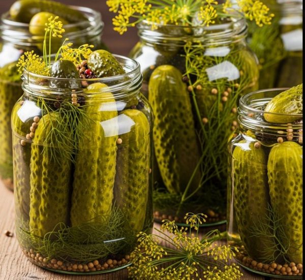 Kopr: Čerstvý kopr je nezbytný! Dodává okurkám typickou vůni a chuť.