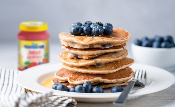 Hotové lívance servírujeme s Hamánkem a zdobíme je malinami s mátou.