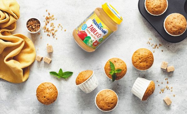 Povolené máslo smícháme s tekutým medem, přidáme ovocný příkrm, vejce a jogurt. Vše dobře promícháme. Postupně přidáváme mouku smíchanou s kypřícím práškem a skořicí. Nakonec do těsta přimícháme najemno nastrouhanou mrkev.