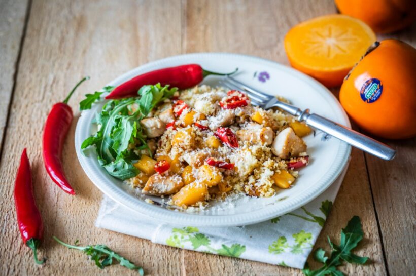 Spojení sladkého kaki a pikantních tónů feferonky a papriky dělá z tohoto receptu skvělý oběd nebo večeři. Šťavnaté kousky krůtího masa a krémový parmazán promění pikantní kuskus v dokonalou delikatesu, která zahřeje a překvapí. Budete potřebovat:
