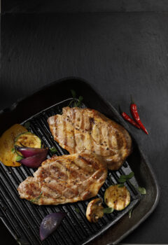Uleželé plátky masa zvolna opékejte na rozpáleném oleji z obou stran a průběžně potírejte zbylou marinádou. Servírujte s grilovanou zeleninou, čerstvým chlebem a oblíbeným dipem.