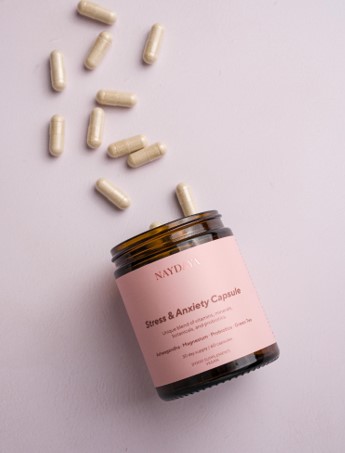 NAYDAYA Doplněk stravy Duševní zdraví, stres & spánek 60 kapslí: 1.090 Kč/3×60 kapslí: 2.780 Kč.