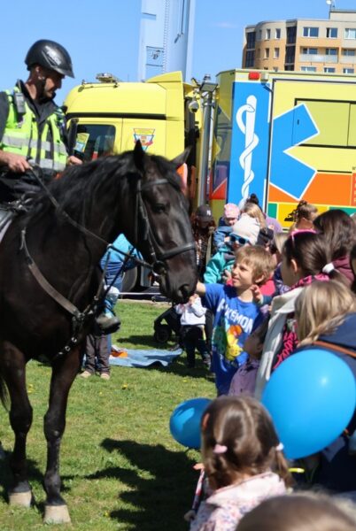 Odpolední program na travnaté ploše Slunečního náměstí patřil dynamickým ukázkám zásahů v terénu. Návštěvníci mohli sledovat simulované zásahy, práci služebních psů i ukázky jízd policejních koní. Tyto praktické demonstrace přiblížily veřejnosti reálné situace, se kterými se složky IZS setkávají.