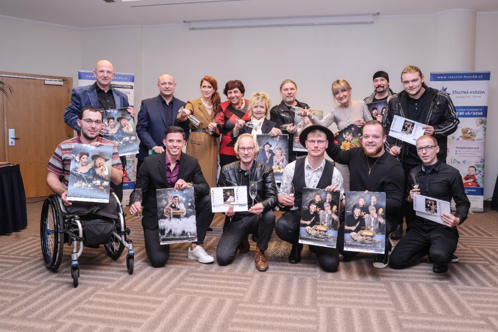 Charitativní kalendář nafotili umělci pro Nadační fond Šťastná hvězda. Výtěžek z prodeje půjde na rehabilitaci dětí s dětskou mozkovou obrnou nebo pro dětské vozíčkáře. „Pod Nadační fond Šťastná hvězda patří ještě Šťastná hvězdička, chráněná dílna pro zdravotně postižené občany. Vyrábíme výrobky, které potom prodáváme. Teď momentálně frčí vánoční svícny a ozdoby. A pod Šťastnou hvězdou jsme založili i únikovou hru Reliquie na zámku Brtnice, výtěžek jde opět na pomoc nemocným dětem a jejich rodinám,“ uvedla ředitelka nadačního fondu Alena Skovajsová a dodala slova díků všem, kteří se do charitativního kalendáře nechali zvěčnit. A je to: nejkrásnější muž světa Dominik Chabr, kapela Madam Royal, zpěvák Bohuš Matuš s rodinou, herecký pár Eva Hrušková a Jan Přeučil, produkční Monika Trávníčková, herečka Michaela Pecháčková, Muž roku 2022 Matěj Švec, muzikant Felix Slováček ml, zpěvák Petr Kolář, houslista Jaroslav Svěcený, moderátorka Zuzana Bubílková, herec Miroslav Etzler s rodinou, zpěvák Zdeněk Drda. Mihne se tam i ředitel soutěží Muž roku a Anděl mezi zdravotníky David Novotný, který celý křest charitativního kalendáře Nadačního fondu Šťastná hvězda moderoval.