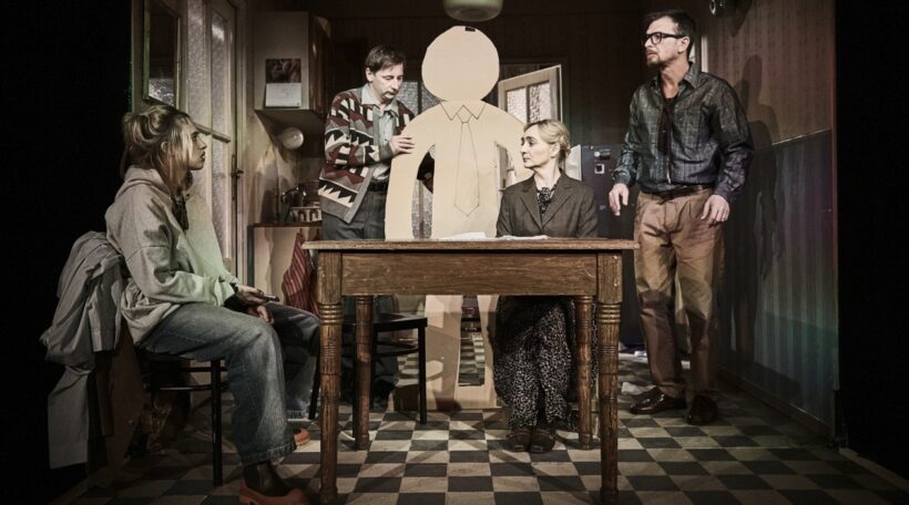 Po Beetlejuicovi, excentrickém a manickém démonovi, ztvární Jan Sklenář naprosto rozdílnou postavu – spíše ušlápnutého Karla – otce, nepraktického, ale dobrosrdečného středostavovského učitele, kterému se pro jeho laskavost, ohleduplnost a smířlivost všechno hroutí pod rukama. „Je to pro mě nádherný proti úkol. Já bych na tolik ohledů a ústupků trpělivost neměl. Ale v něčem mi to práci na Beetlejuicovi připomíná – v mravenčí a detailní práci na postavě. Naše groteska také běží ve velmi rychlém tempu. Režisér Vajdička má až filmové vidění, takže všechno musí být naprosto uvěřitelné, přitom s chytrou nadsázkou. Zápletka hry je zpočátku jednoduchá. Jedna část rodiny přijde na oběd k té druhé. Potíž nastane ve chvíli, kdy si moje sestra, kterou hraje Klára Oltová, přivede ke stolu svého manžela z kartonu. Její muž totiž zemřel a ona není schopná se s jeho ztrátou vyrovnat, proto si vystřihne manželovu obří postavu z papíru. Všechny tím svým Milošem terorizuje, v čehož důsledku se pak vyjeví všechny charaktery celé rodiny,“ vysvětluje představitel hlavní postavy Jan Sklenář.
