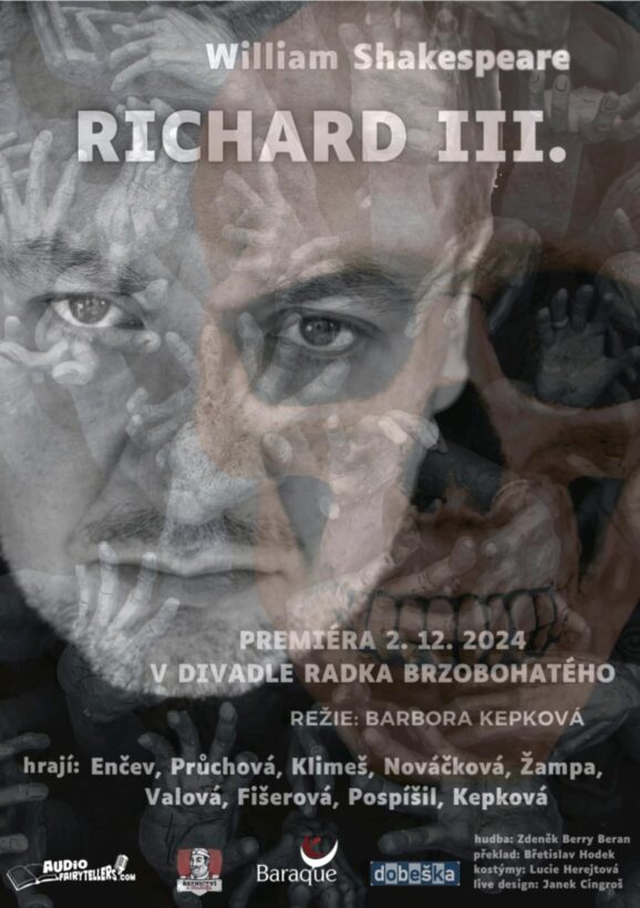 O čem hra je? Richard III., mladší bratr anglického krále Edwarda IV., je deformovaný a zlý muž, který se za každou cenu chce zmocnit trůnu. S pomocí lží, intrik a vražd postupně eliminuje své soupeře a stává se králem. Jeho vláda je však plná násilí a strachu a nakonec ho dožene spravedlnost. Shakespearův příběh zůstává dodnes aktuální a poukazuje na nebezpečí, které představuje neomezená touha po moci.