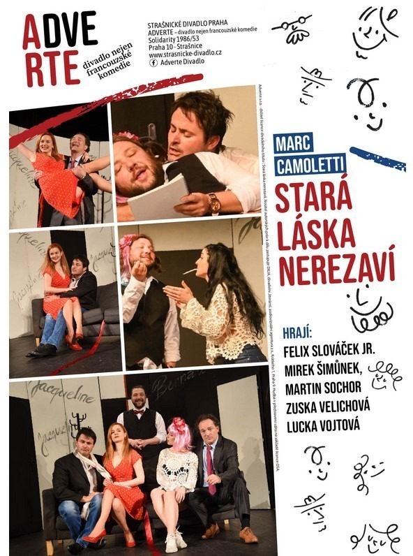 Večer pak bude patřit další skvělé komedii, tentokrát z pera vynikající francouzského dramatika Marca Camolettiho. Ve hře Stará láska nerezaví se vše točí kolem rozvádějícího se páru, advokáta a zubařky, kteří stále obývají společný byt a i když oba mají mladší protějšky, ukáže se, že na minulé city se nezapomíná a žárlivost začíná pracovat na plné obrátky. V hlavních rolích uvidíte Zuzanu Velichovou, Martina Sochora, Mirka Šimůnka, Felixe Slováčka jr. a Lucku Vojtovou. Začátek je plánován na 19.30 hod.