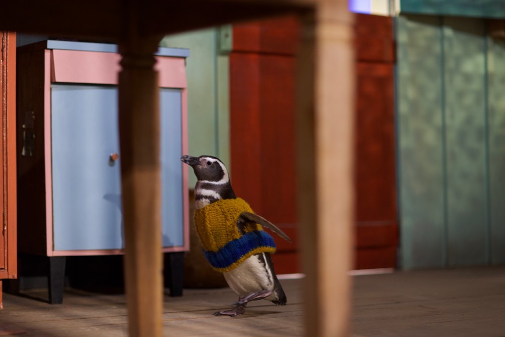 Herci, včetně Jeana Rena, měli samozřejmě jen mizivou představu o tom, jaké to bude pracovat s tučňáky. Když se Reno poprvé dotkl jednoho z deseti tučňáků, kteří si zahráli DinDima, bylo to pro něj zjevení. „K tučňákům se musíte přibližovat velmi pomalu a opatrně, dokud vás nepoznají. Nejvíce vás na první pohled překvapí, že když se jich dotknete, jsou tak vřelí, skoro jako člověk, jako mládě. Myslím, že to nečekáte, protože jsou to ptáci, ale nemůžete si pomoct a reagujete na to,“ popsal své bezprostřední pocity Jean Reno a ještě prozradil: „Moc jsem si je užil. Pochopitelně to jsou skutečná divoká zvířata, ne pohádkové postavy, takže si dělají, co chtějí, a vy to musíte akceptovat. Jsou opravdu obdivuhodní – malí, ale silní, houževnatí, schopní a odhodlaní chránit své rodiny.“