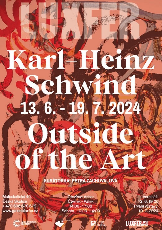 Kurátorka Petra Zachovalová představí 13.června tohoto roku v České Skalici v Galerii Luxfer výstavu německého malíře Karla-Heinze Schwinda (*1958) s názvem Outside of the Art – Vně umění. Název výstavy naznačuje, že Schwind tvoří umění v izolaci, mimo současný umělecký svět. Na počátku své tvorby navazoval na tradici německého expresionismu, inspiroval se zejména dílem Ernsta L. Kirchnera. Později jej ovlivnila generace umělců jako Jean Dubuffet, seskupení COBRA v čele s Asgerem Jornem a v neposlední řadě jeho učitel malby Georg Baselitz. Do výstavy jsou zařazeny práce na plátně, série sto prací na papíře vznikala jako deník v průběhu celého roku 2010. Výstava potrvá do 19.července.