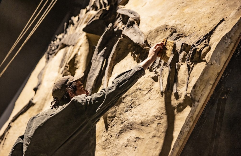 Kostra Edmontosaura, kterého v Dinosaurii pojmenovali Ed, je dlouhá devět metrů a na výšku má tři metry. Není to žádný drobek – spolu s podložím, ve kterém byl nalezen, váží zhruba tunu. „Edovu kostru jsme zakoupili, když ještě byla v zemi. I proto jsme mohli rozhodnout o tom, že pro účel expozice zachováme polohu, v jaké byla nalezena a vystavíme ji spolu s horninou. Tím se také na první pohled odlišuje od jiných koster v našem muzeu,“ popisuje paleontolog muzea Dinosauria Štěpán Pícha.