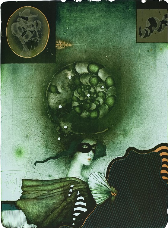 Kromě barevných litografií je zde poprvé vystaveno i devět neznámých akrylových obrazů z 90. let