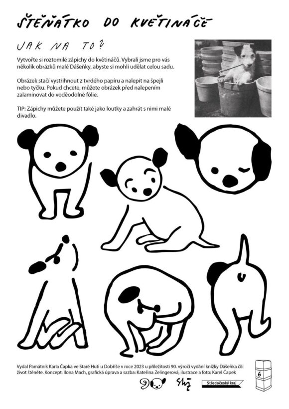 Materiály využívají originální Čapkovy kresby a jsou minimalistické co do pracnosti i designu. Od 1. července si je ve formátu PDF bude možné stáhnout přímo na stránkách Památníku a vytisknout doma na obyčejné černobílé tiskárně ve velikosti A4 nebo A3, popřípadě budou k mání přímo na místě. „Děti si je tak sestaví doma, ve škole nebo i u nás – v krásné zahradě Památníku, až sem s rodiči přijedou za Dášeňkou,“ říká Vacek.