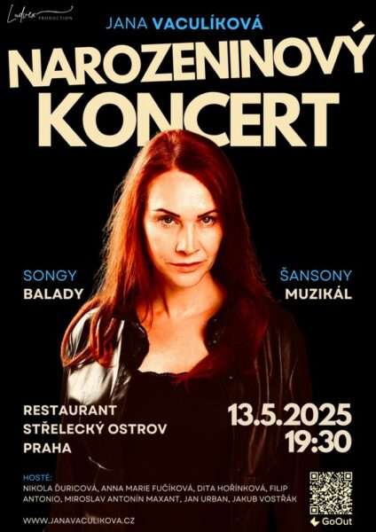 Zpěvačka, herečka, moderátorka Jana Vaculíková se rozhodla oslavit svůj narozeninový den společně se svými fanoušky v nádherných prostorách Restaurace Střelecký ostrov, 13. května, od 19:30 hod.